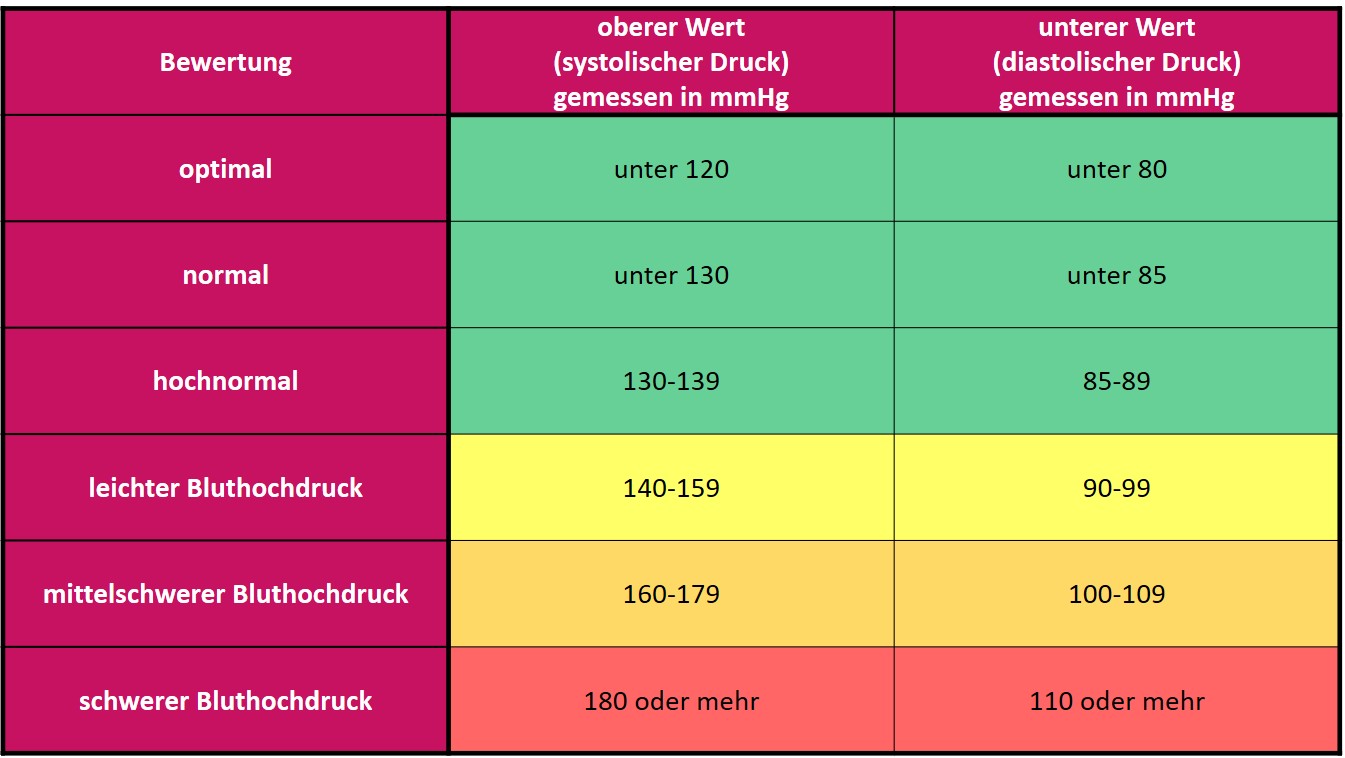 Hier finden Sie die Einstufung der Blutdruckwerte: